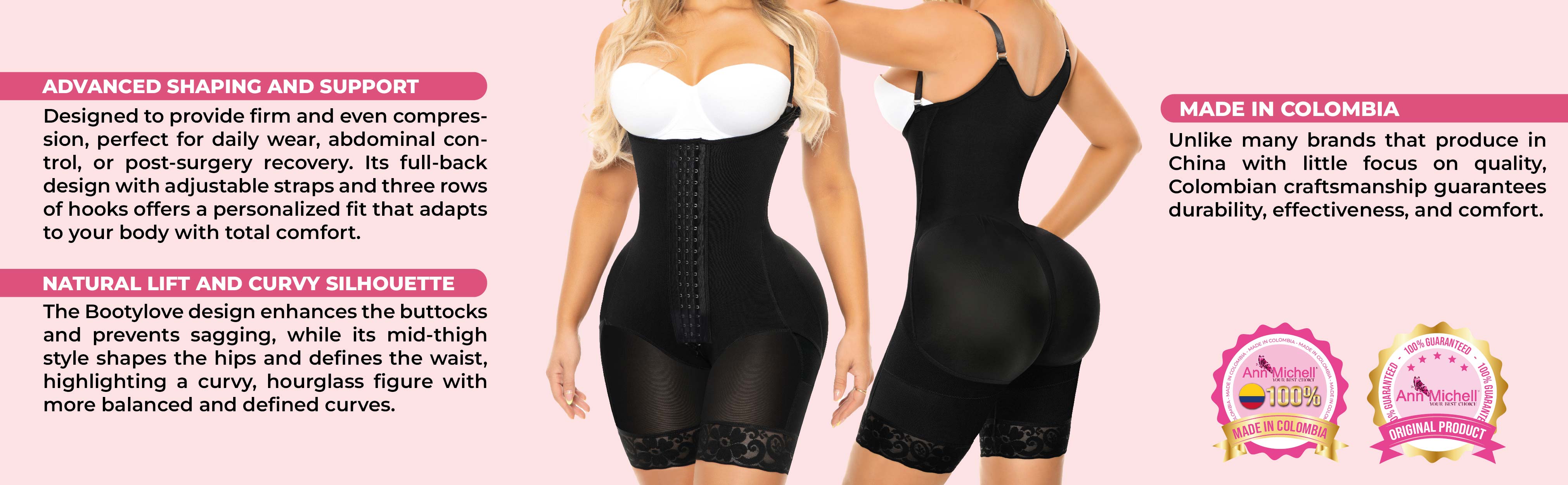 Perfect for curvy, hourglass, and BootyLove body types, this Colombian faja sculpts your waist, lifts your buttocks, and enhances your natural proportions.