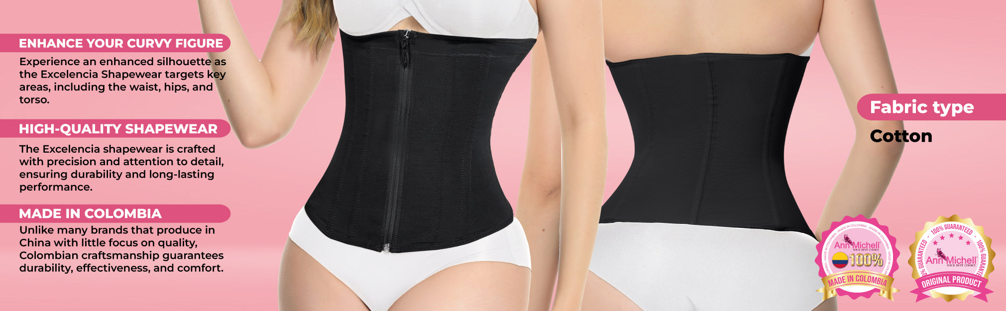 • About the garment: The Exclencia corset type waist trainer is meant to reduce waist, abdomen, and lower back measurements. It features a 2 hidden rows of hooks and zipper with eye closure for more compression. It has internal rods for better support in your posture and back. This corset type garment is ideal for everyday use.