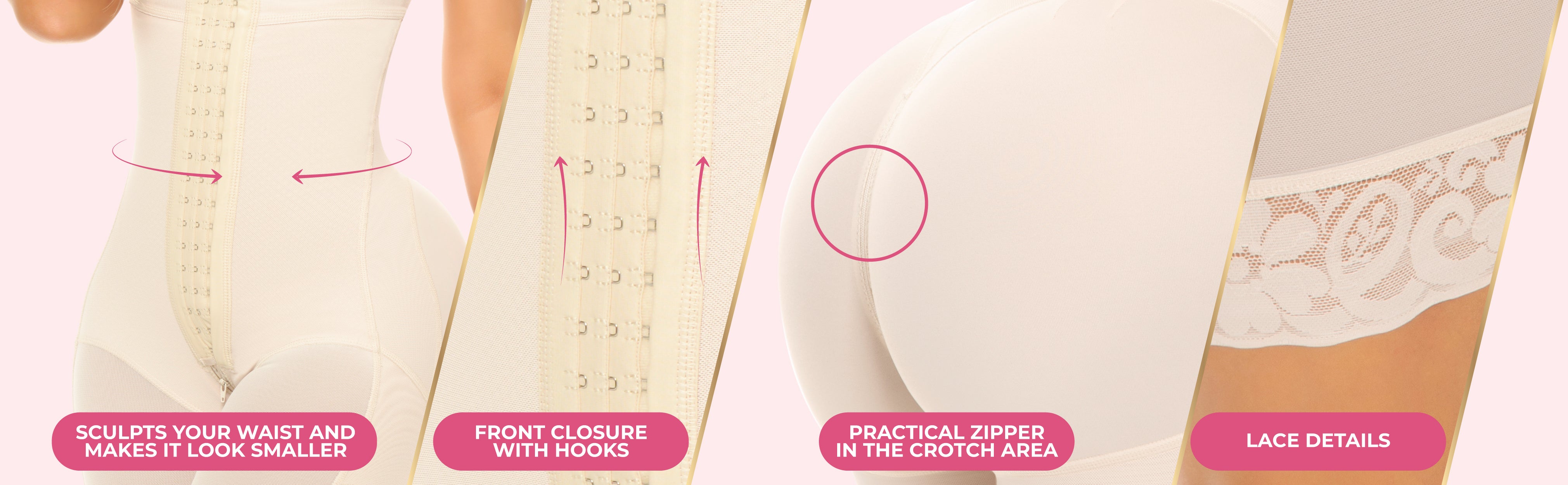 Our Stage 4 faja is engineered to shape your waist, enhance your hips, and support your glutes — all while offering exceptional abdominal and back control. With 3 rows of hooks, this strapless design delivers adjustable compression, removable straps for versatile wear, and a knee-length fit ideal for recovery or styling.