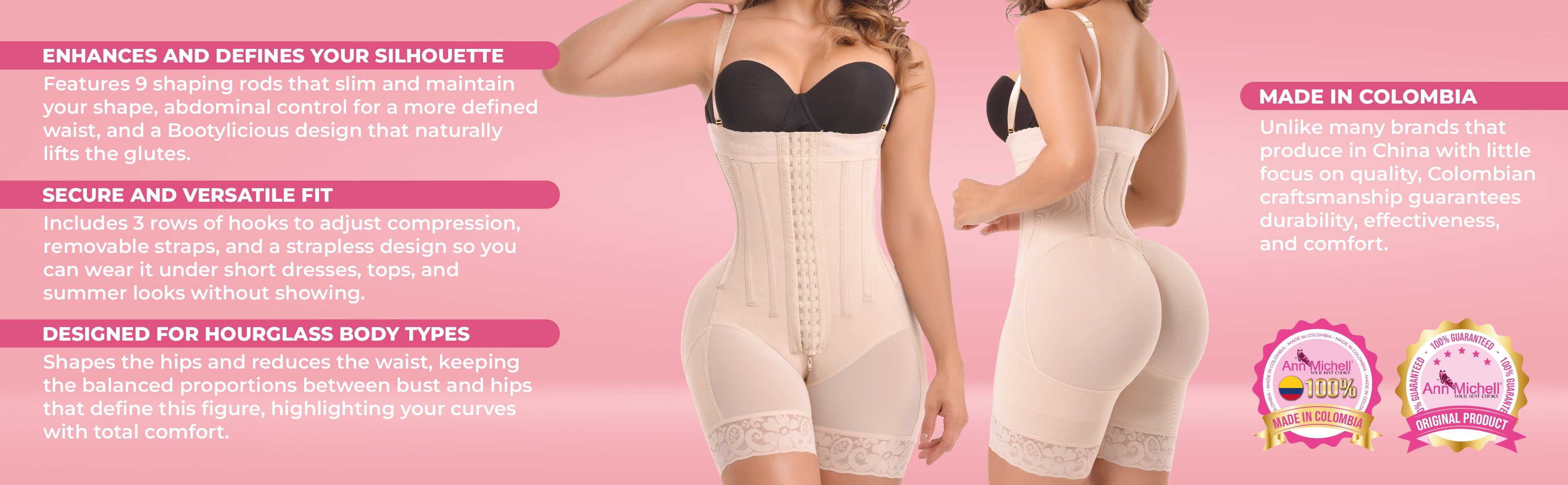 Discover the Ann Michell Strapless JLO Stage 5 Waist Trainer, the ultimate shapewear for achieving your hourglass figure with authentic Colombian craftsmanship. Unlike cheap Chinese fajas that lose shape and quality after a few wears, our Colombian-made shapewear delivers superior compression, comfort, and long-lasting results.